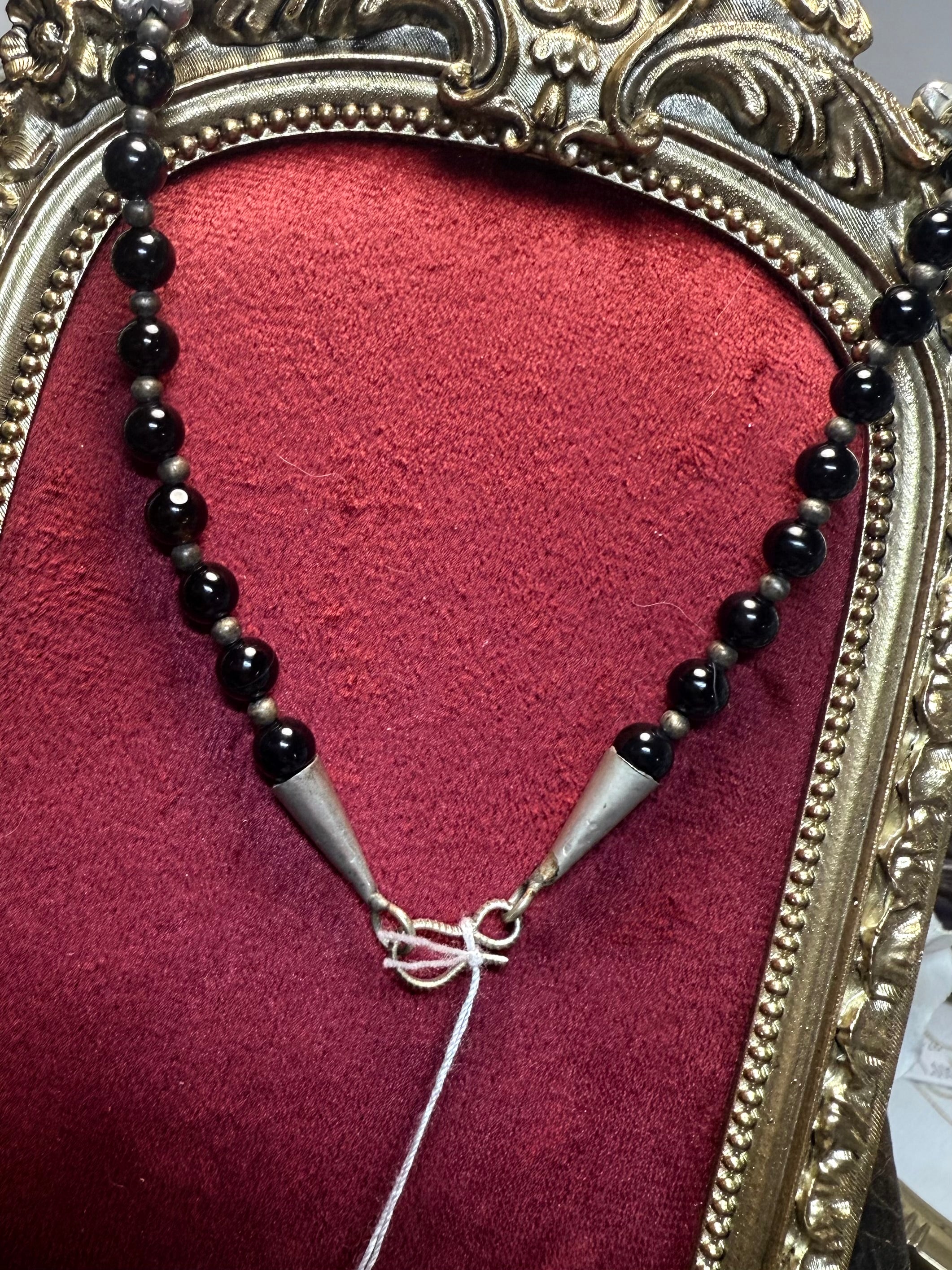 Vintage Asian-Inspired Black Glass & Metal Statement Necklace