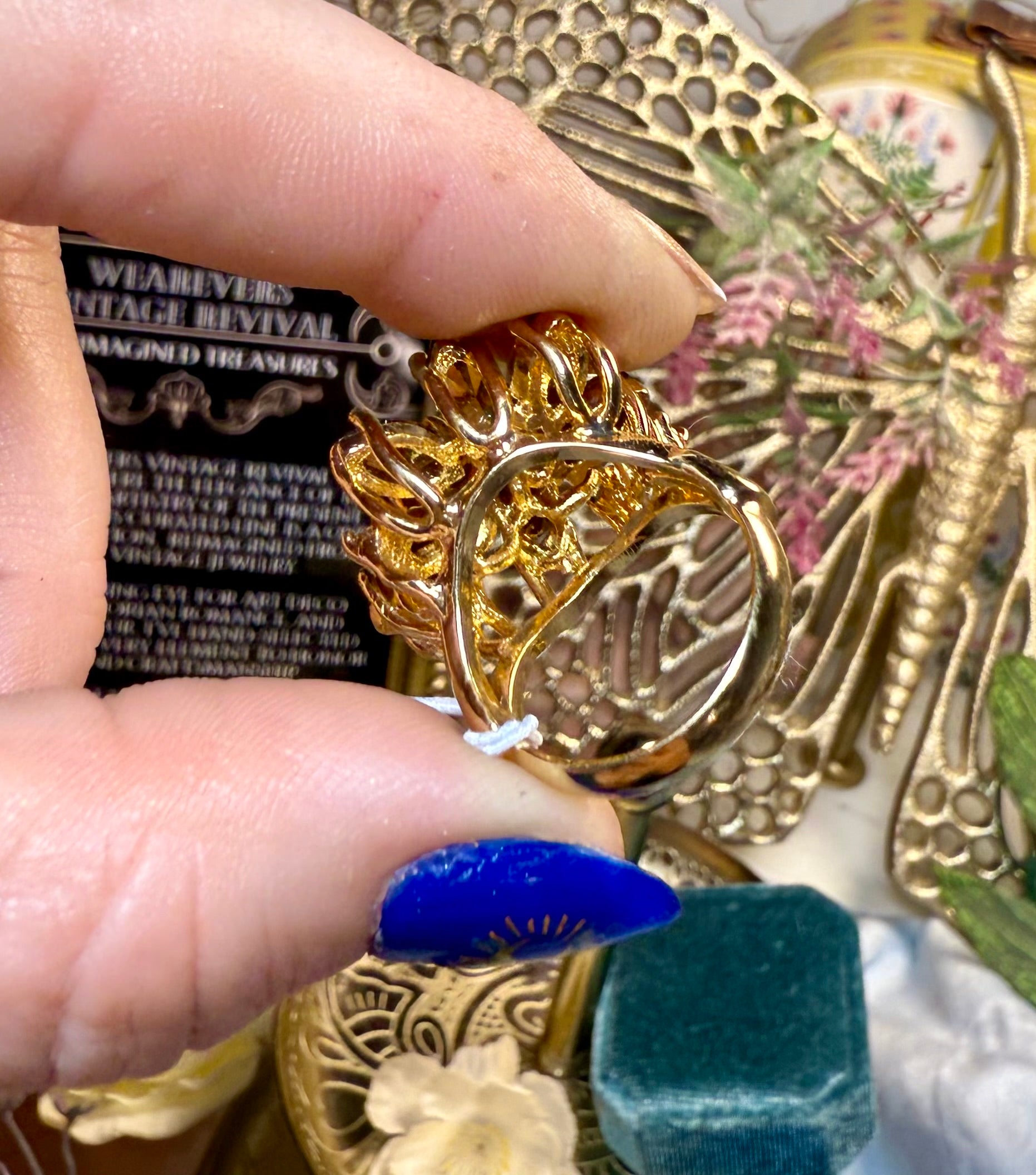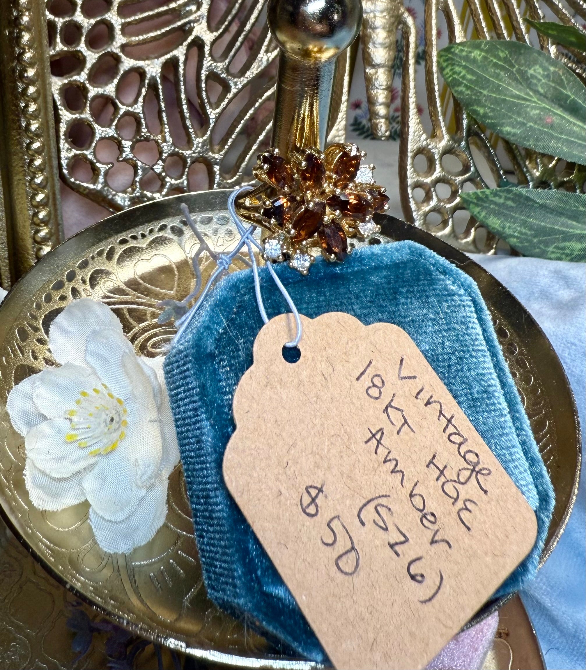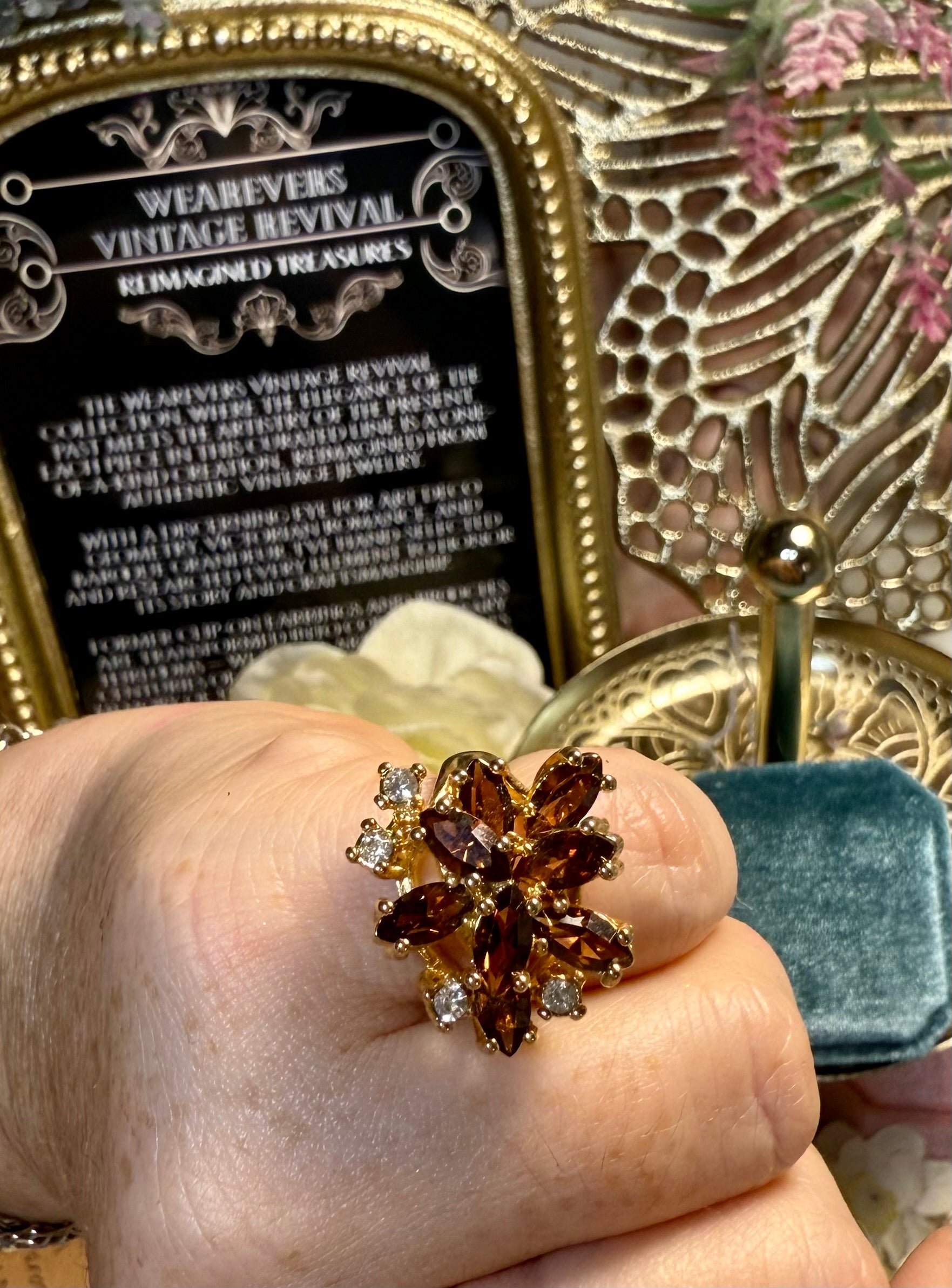 Vintage Sarah Coventry 1970's Amber Ring, Size 6.  18k Gold electroplated.